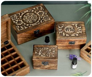 Leiskite šiam unikaliam kūriniui įžengti į jūsų namų šventovę, kur jis taps ne tik elegantišku akcentu, bet ir talpintu mistinių aliejų paslapčių. Šios dėžutės pagamintos iš mango medienos, kuri savo šiluma ir tekstūra atspindi natūralų ryšį su žeme. Kiekviena dėžutė papuošta meistriškai išraižytais raštais, kurie sukuria atmosferą, kupiną paslapčių ir tūkstančių metų senumo tradicijų.