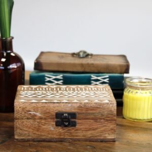 Balta White Washed mango medžio dėžutė su slavų ornamentais – tai ne tik saugojimo indas, bet ir talismanas namams. Kiekviena dėžutė drožinėta rankomis Indijoje, todėl jos raštai neša savitą energiją, primenančią senųjų genčių apsaugos simbolius. Natūralaus mango medžio tekstūra ir švelniai balinta spalva kuria harmoniją, ramybę ir subtilų sakralumo pojūtį.