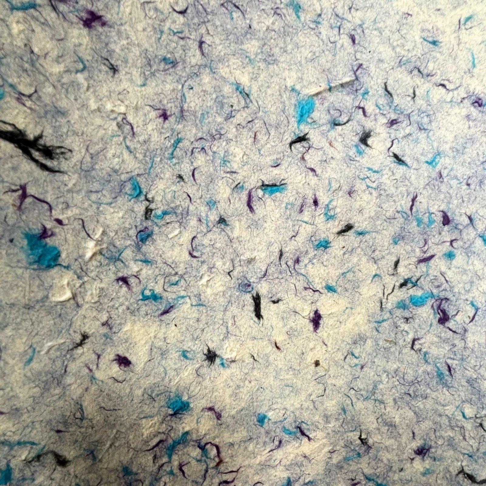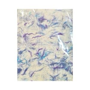 Šio lapo paviršiuje išsibarstę mėlynos, violetinės ir grafito atspalvių medvilnės pluoštai, kurie sukuria švelnų, lengvai marmurinį raštą. Ši spalvų dermė primena ramų vakaro dangų ar vandens paviršių – santūri, bet gyva ir pilna charakterio.